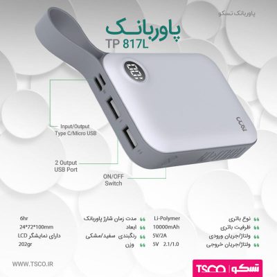 مشخصات فنی:INPUT : ۵V-۲.۱A ۹V/۲A OUT PUT : ۵V-۳A ۹V/۲A ۱۲V/۱.۵A دارای دو درگاه ورودی میکرو و تایپ سی: DC۵V/۳A ۹V/۲A ۱۲V/۱.۵A خروجی تایپ سی : DC۵V/۳A ۹V/۲A ۱۲V/۱.۵A خروجی یو اس بی : DC۵V/۳A ۹V/۲A ۱۲V/۱.۵A QUALCOMM ۳.۰ QUICK CHARCHE PD