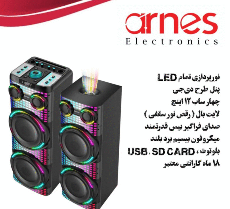 گفتنی است فروشگاه دنیای اسپیکر علاوهبر اینکه با افتخار دارای آرشیو موجودی قوی از جدیدترین اسپیکرهای روز دنیا در ابعاد و با امکانات مختلف می باشد، همچنین فروشگاه ما علاوهبر دارا بودن نمایندگی برند ARNES جدیدترین مدلهای این برند اعم از مدل SP-A550 ، ARNES-1282 و مدل A 692 می باشد.