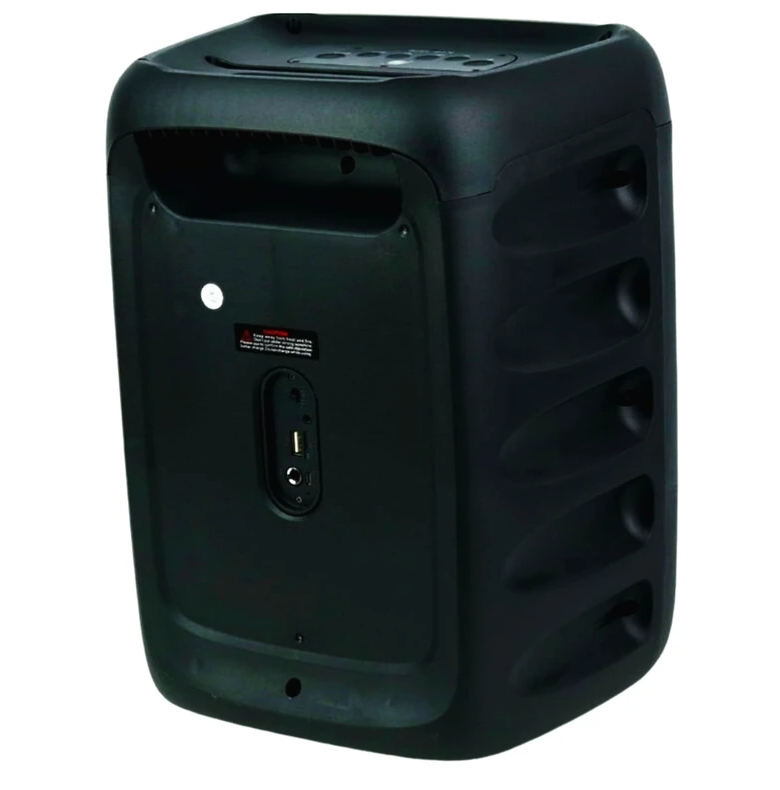حداکثر حافظه قابل پشتیبانی 32 گیگابایت پشتیبانی از فلش مموری USB و رم میکرو SD، رادیو FM برای علاقمندان به رادیو و… دارای نورپردازی داخلی جهت ایجاد جلوه بصری زیبا مجهز به درایو 8 اینچ جهت پخش صدای واضح و شفاف، توان خروجی کلی 20 وات و پاسخ فرکانسی 100 هرتز الی 20 کیلوهرتز برخودار از کلید های فیزیکی جهت مدیریتی موسیقی، تنظیم ولوم و… وجود شیار در نزدیکی دسته جهت قرار دادن تلفن همراه تامین انرژی از طریق باتری داخلی با ظرفیت 2400 میلی آمپر ساعت و امکان شارژ مجدد از طریق کابل میکرو یو اس بی امکان اتصال بی سیم از طریق بلوتوث با برد اتصال 10 متری و اتصال با سیم از طریق رابط جک 3٫5 میلی متری صدا دارای بدنه ای مقاوم در برابر ضربه و فشار از جنس پلاستیک، مجهز به دسته جهت حمل آسان تر می باشد.