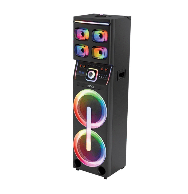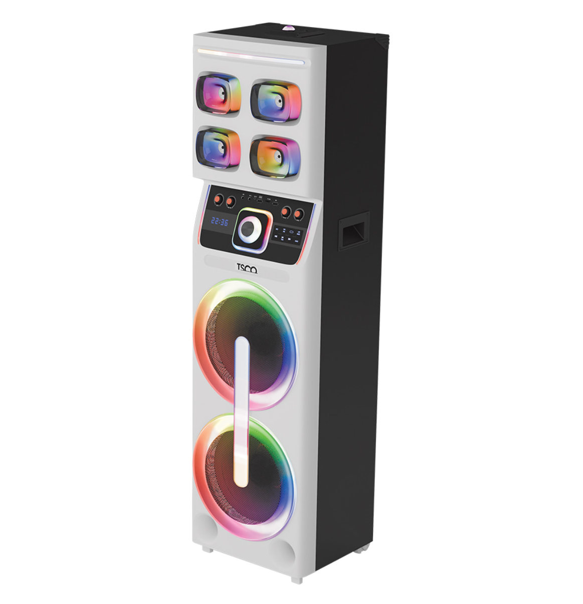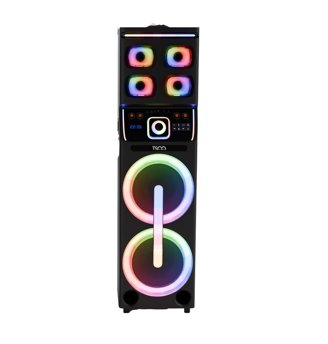 اسپیکر TS20082 مجهز به یک نمایشگر کوچک است که وضعیت فعلی دستگاه و حالتهای مختلف آن را نمایش میدهد. این نمایشگر به کاربران کمک میکند تا بدون نیاز به حدس زدن، بدانند دستگاه در چه حالتی قرار دارد یا چه ورودیای فعال است. همچنین، پنل کنترل حرفهای این اسپیکر شامل دکمههایی برای تنظیم حجم صدا، باس، تریبل، و اکو میکروفون است. یکی از ویژگیهای برجسته اسپیکر TS1919، قدرت خروجی بالای آن است. این اسپیکر با توان خروجی PMPO معادل 22000 وات و RMS برابر با 80 وات، قادر است صدایی فوقالعاده قدرتمند و شفاف تولید کند. ووفرهای 12 اینچی دوگانه این اسپیکر، به تولید باسهای عمیق و غنی کمک میکنند، در حالی که تیوتر 3 اینچی آن تضمین میکند که فرکانسهای بالاتر نیز با وضوح کامل پخش شوند. نسبت سیگنال به نویز (S/N Ratio) یکی از مهمترین معیارها برای سنجش کیفیت صدا در اسپیکرها است. اسپیکر TS20082 با S/N Ratio برابر با 80 دسیبل، تضمین میکند که صدای پخش شده از آن، حتی در بالاترین ولومها، بدون نویز و با وضوح بسیار بالا باشد. این اسپیکر از چندین نوع اتصال پشتیبانی میکند که شامل بلوتوث نسخه 5.3، پورتهای USB، کارت حافظه TF، رادیو FM و ورودی AUX میشود. این مجموعه از اتصالات، این امکان را به کاربر میدهد تا از هر منبعی، چه بیسیم و چه باسیم، موسیقی یا محتوای صوتی مورد نظر خود را پخش کند. یکی دیگر از ویژگیهای جذاب اسپیکر TS20082، قابلیت ضبط صدا و کارائوکه است. این اسپیکر دارای ورودیهای میکروفون است که به شما اجازه میدهد تا میکروفونهای خود را به آن متصل کرده و به راحتی صداهای مختلف را ضبط کنید یا در جلسات کارائوکه شرکت کنید. اسپیکر TS20082 توانایی پخش انواع فرمتهای صوتی از جمله MP3، APE و WMA را دارد. با توجه به قدرت خروجی بالا و کیفیت صدای بینظیر، اسپیکر TS20082 انتخابی عالی برای استفاده در مهمانیها و مراسم مختلف است. این اسپیکر به راحتی میتواند فضای یک مهمانی بزرگ را با صدای قوی و شفاف پر کند. اسپیکر TS20082 تنها برای استفاده در مراسمهای بزرگ نیست. این اسپیکر با طراحی زیبا و اتصالات متنوع، میتواند به راحتی در خانه نیز استفاده شود.