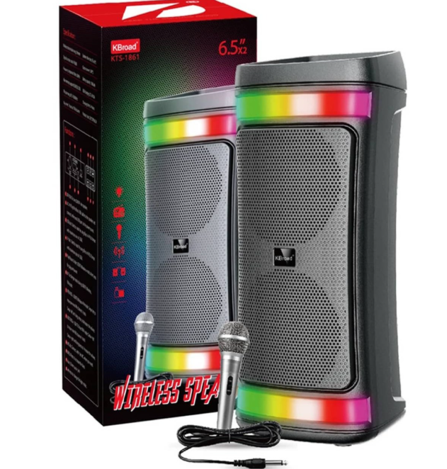 اسپیکر KTS-1861 جدید با رقص نور، ساب 6.5 اینچ و میکروفن – تجربهای بینظیر از صدا و نور