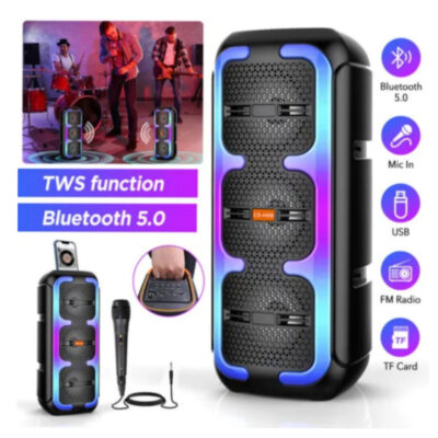 ابعاد: 8 اینچ توان خروجی: 20 وات وزن: تقریبا 2 کیلوگرم نوع اتصال: باسیم و بدون سیم و بلوتوثی تعداد